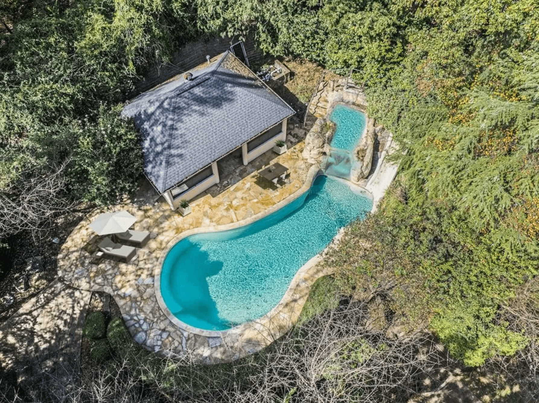 Outdoor features include a swimming pool with spa & slide and a pool house.
