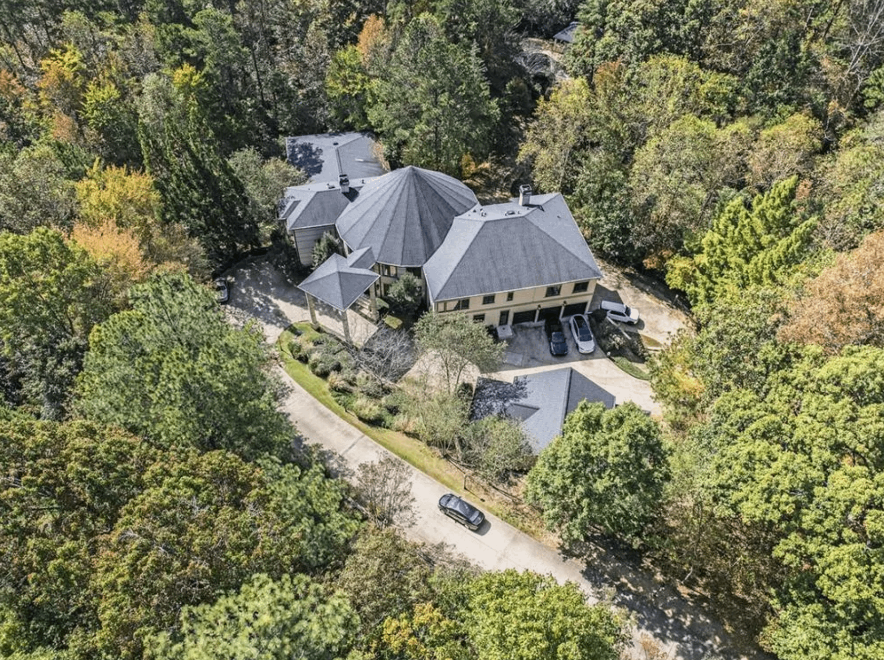 This home is located at 1050 Bedford Gardens Drive in Alpharetta, Georgia and is situated on over 6 acres of land in the Country Club of the South.ย