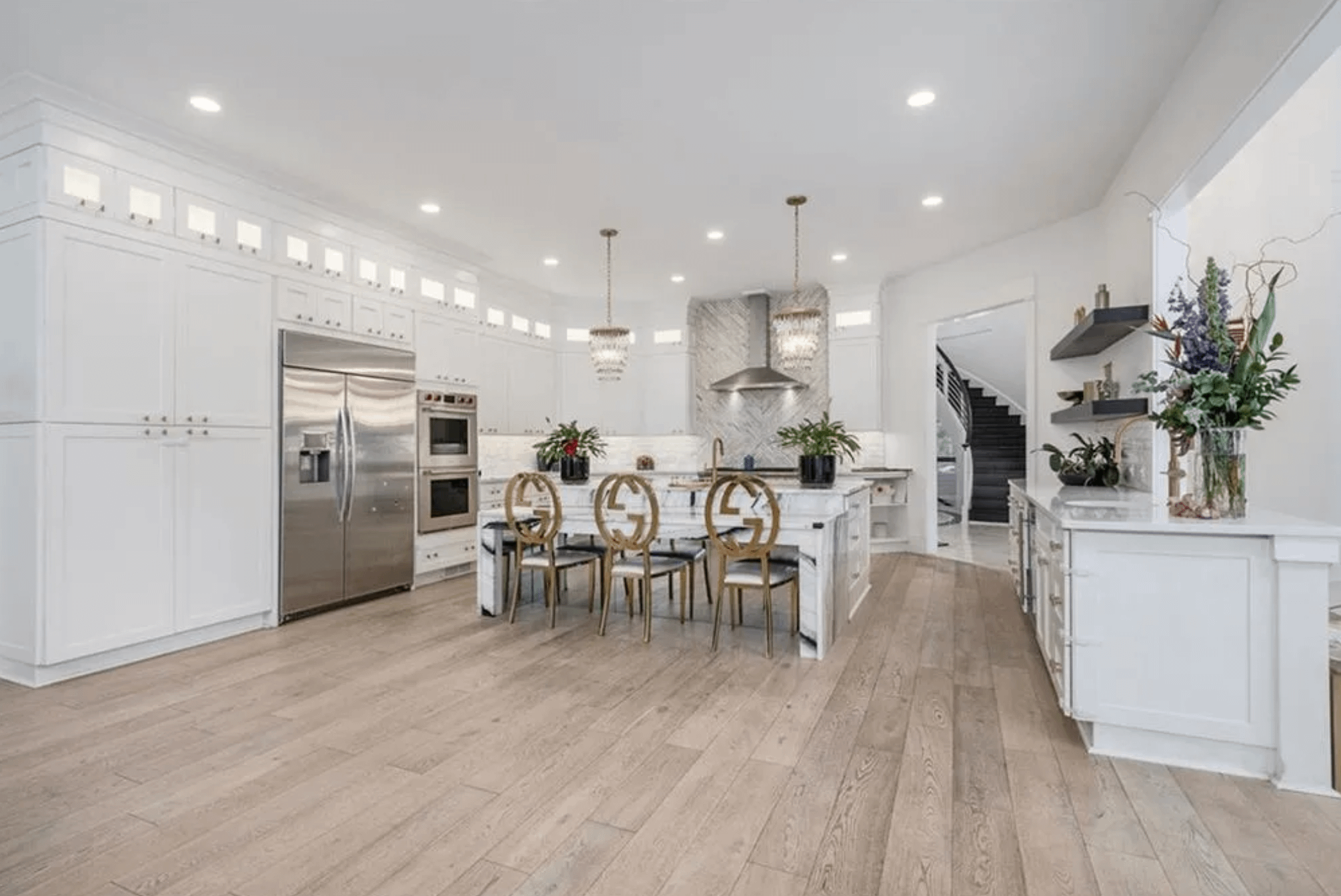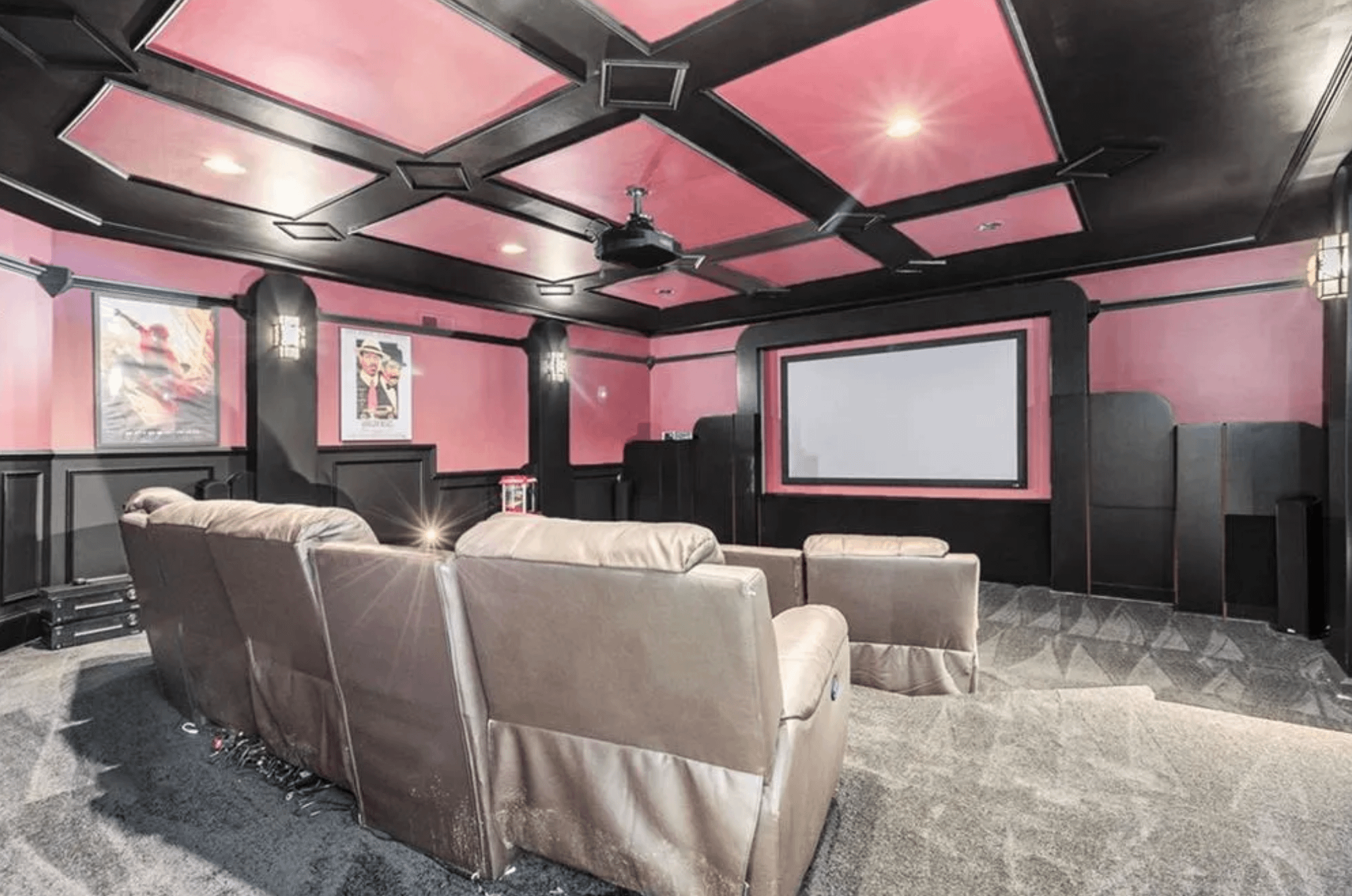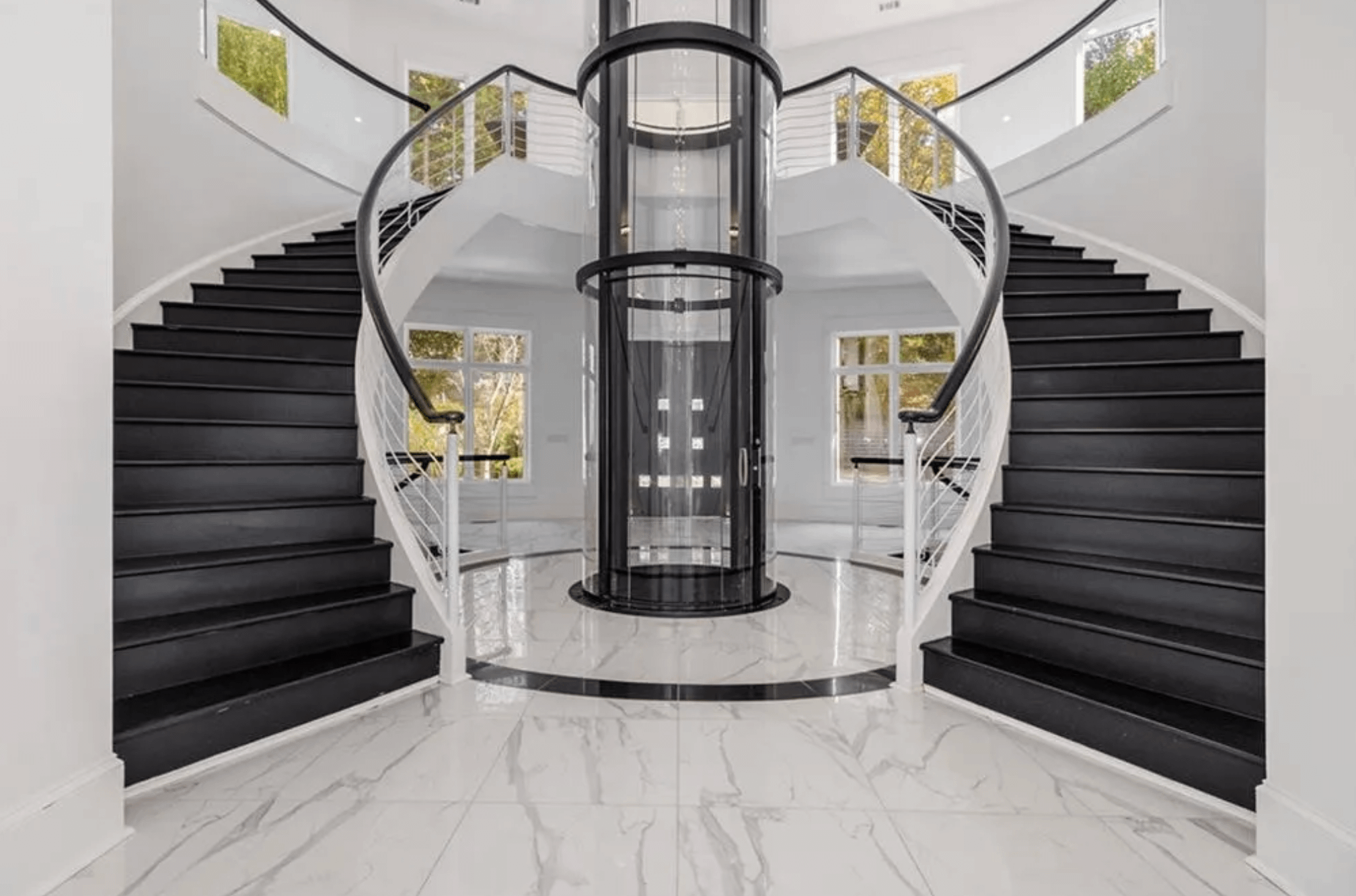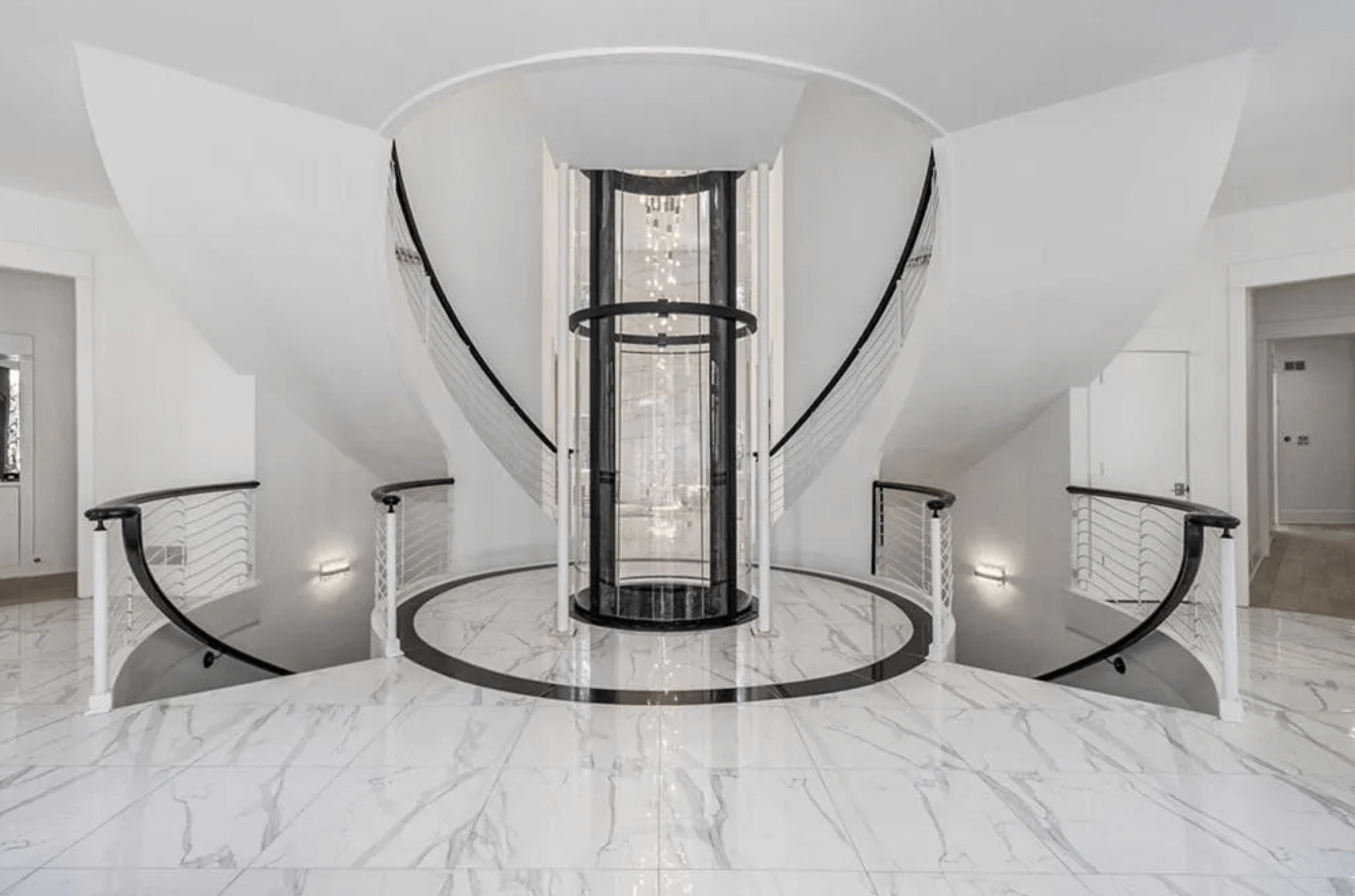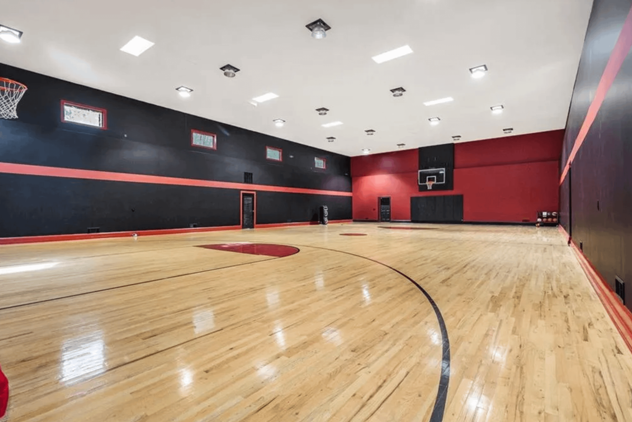 It was built in 1999 and features over 17,000 square feet of living space with 7 bedrooms, 8 full and 3 half bathrooms, foyer with double staircase, & pneumatic elevator, great room, formal dining room, kitchen, family room, wet bar, movie theater, recording studio, indoor basketball court, 10-car garage and more.