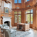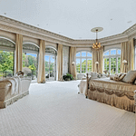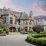 It boasts a main house, guest house and stable. The stone main home features over 29,000 square feet of living space with 8 bedrooms, 15 bathrooms, 2 elevators, formal living & dining rooms, gourmet kitchen, breakfast room, family room, 2-story paneled library, conservatory, game room, wine cellar, garage and much more.