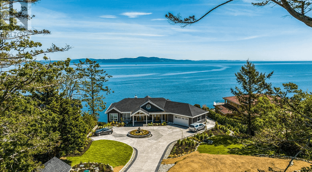 This waterfront home is located atย 4585 Leyns Road in Saanich, British Columbia, Canada and is situated on over an acre of land.