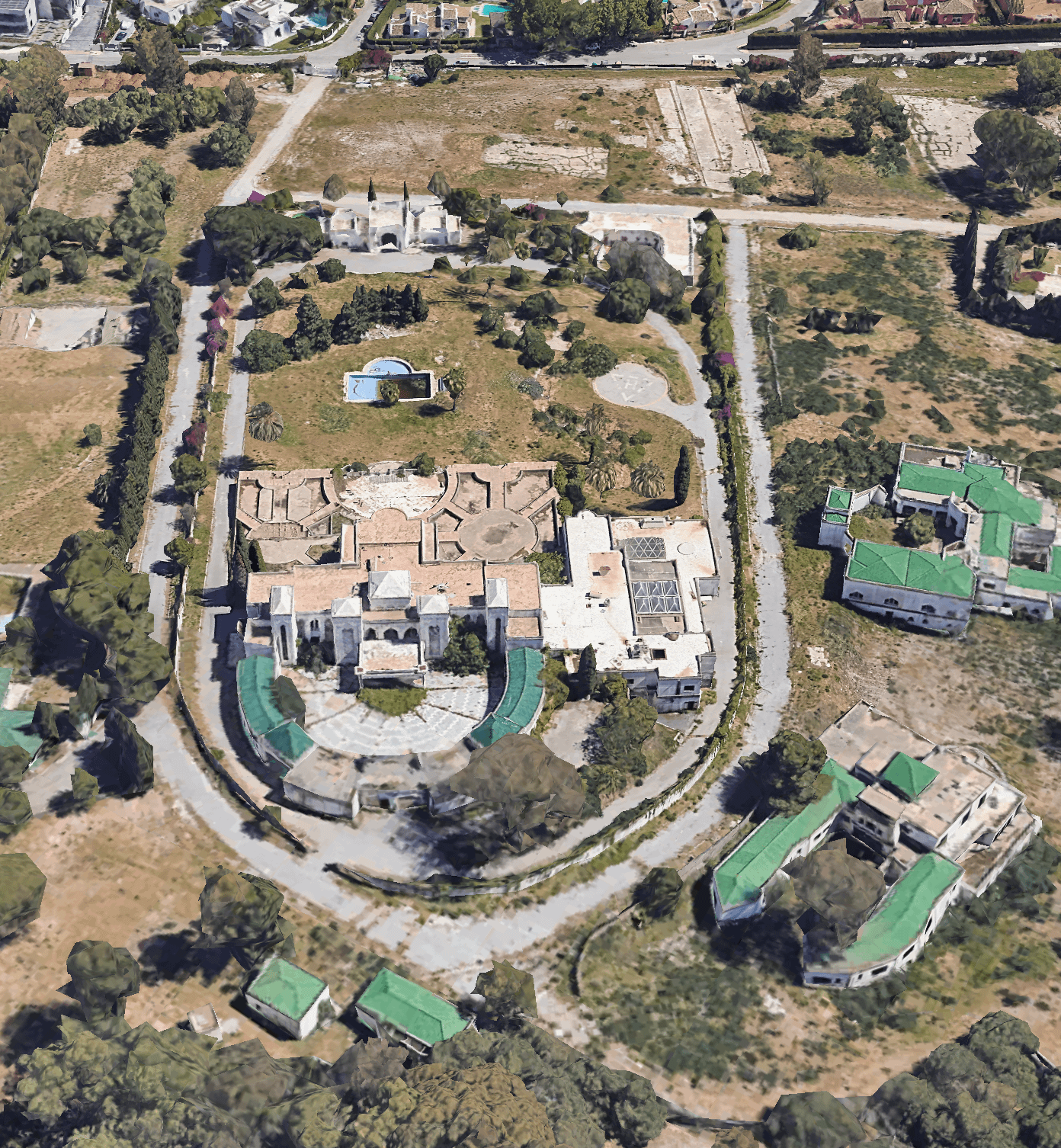 This £300 million mega estate is located in Marbella, Spain (coordinates 36°30’08.0″N 4°56’27.5″W) and is currently abandoned. It was the holiday home of the late King Fahd, who was the prime minister of Saudi Arabia and leader of the House of Saud. It was said to be home to all 13 of the king’s wives. At the time of his death in 2005, he was estimated to be worth £25 billion.