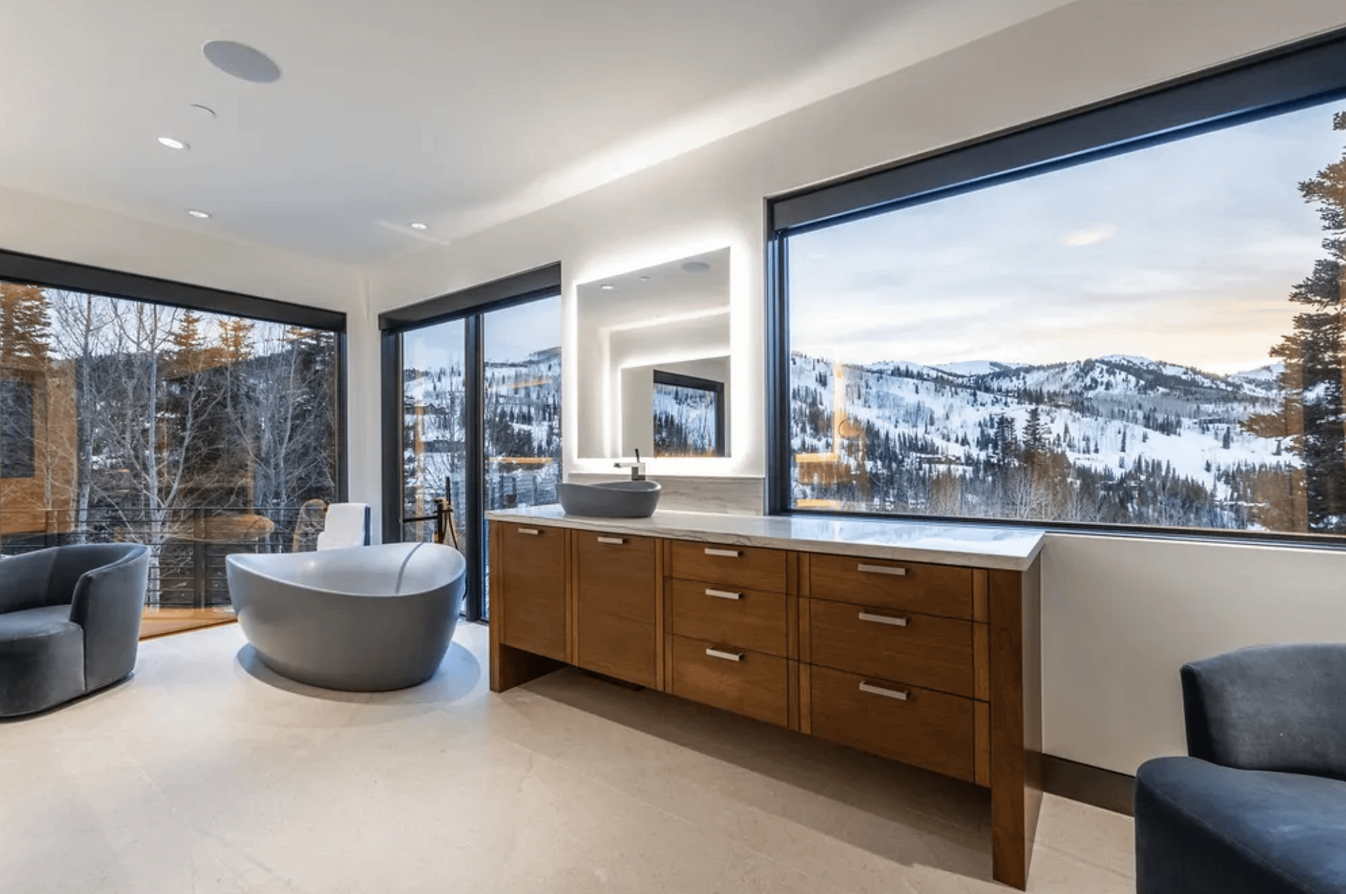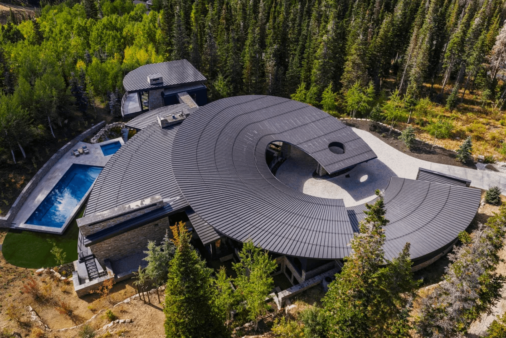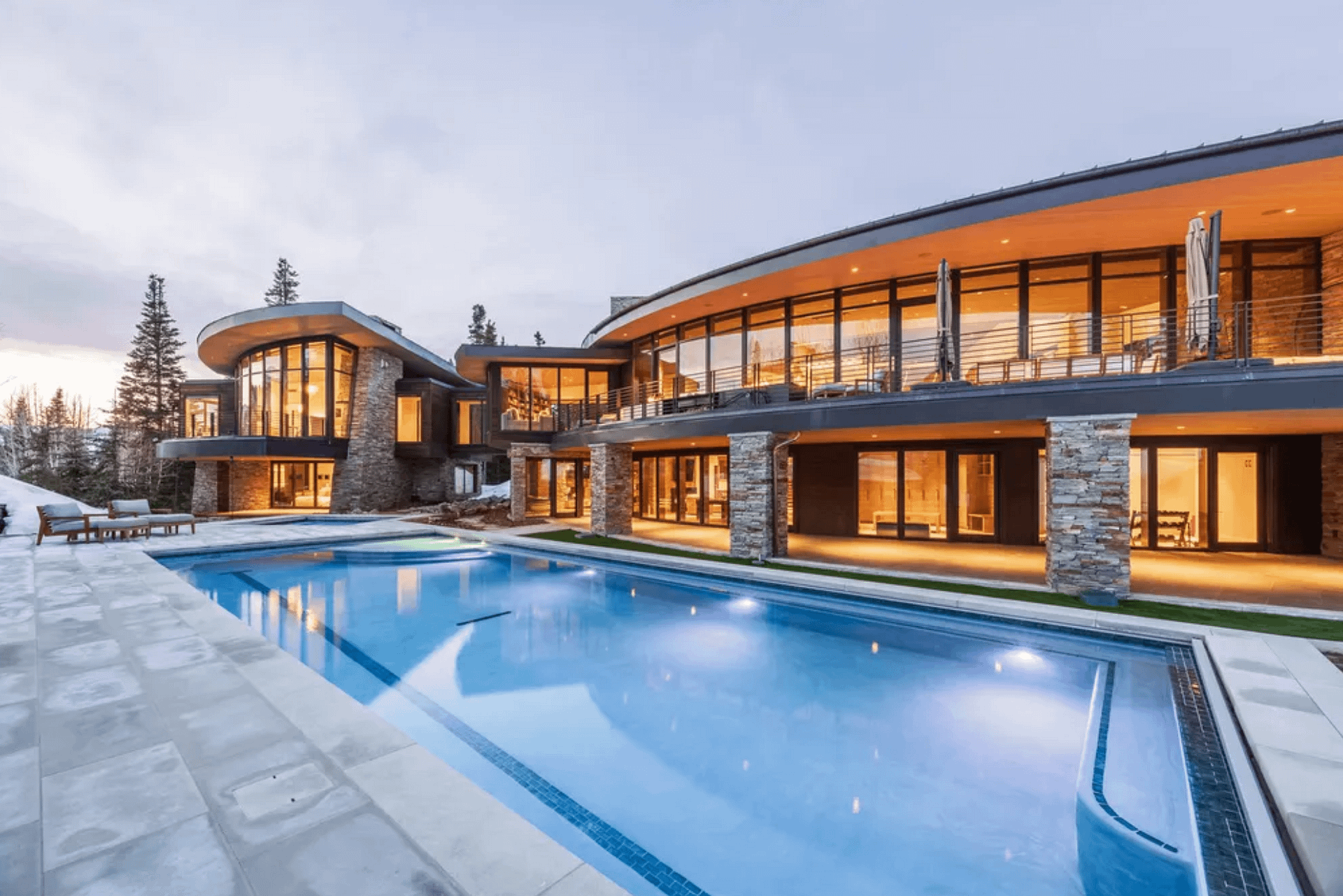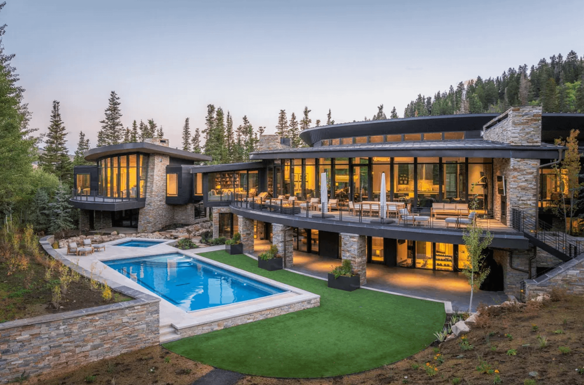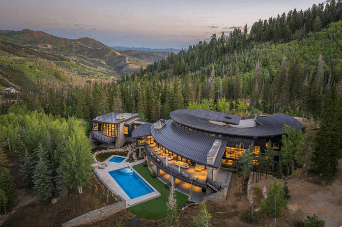 This contemporary style home is located at 217 White Pine Canyon Road in Park City, Utah and is situated on 4.5 acres of land.ย