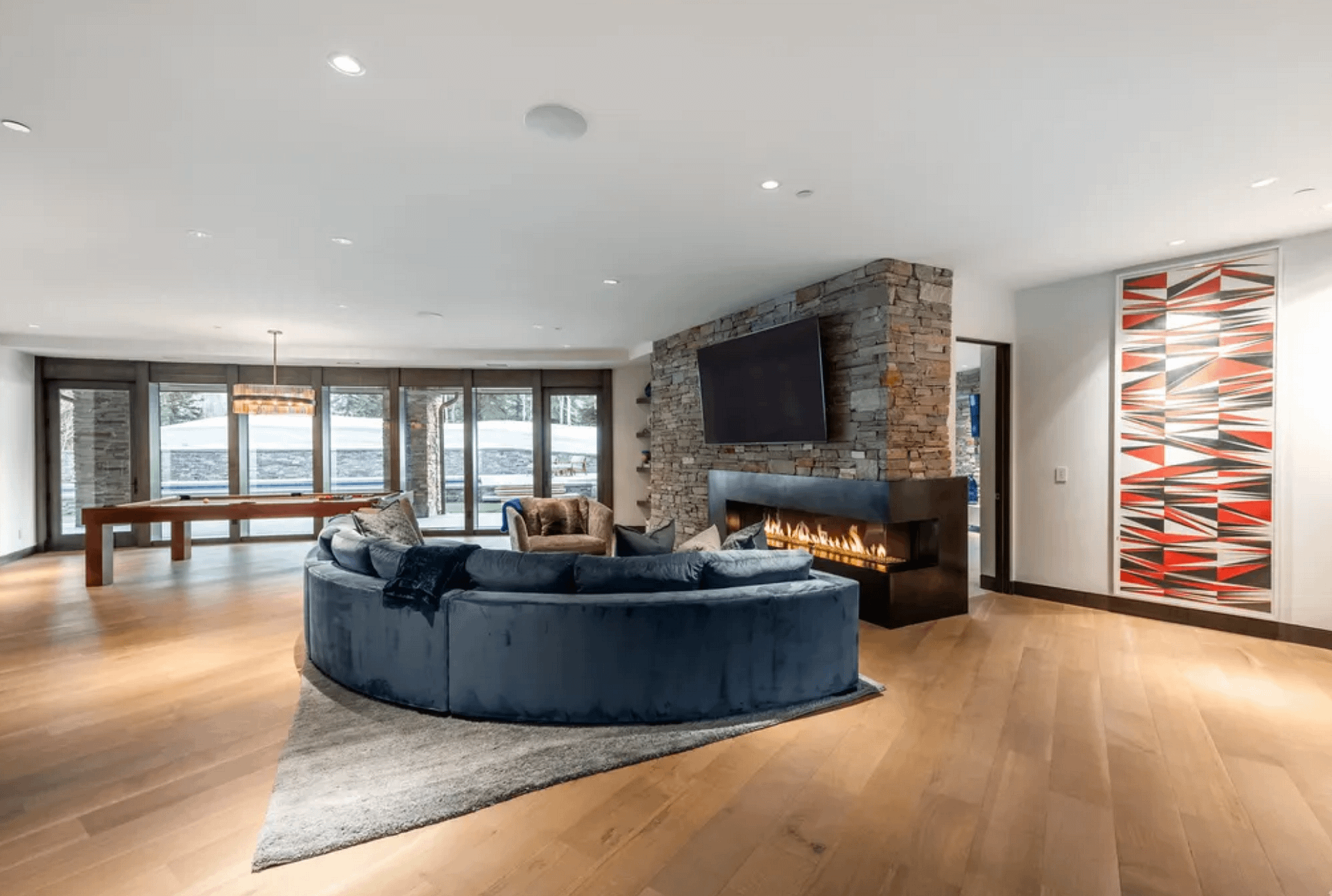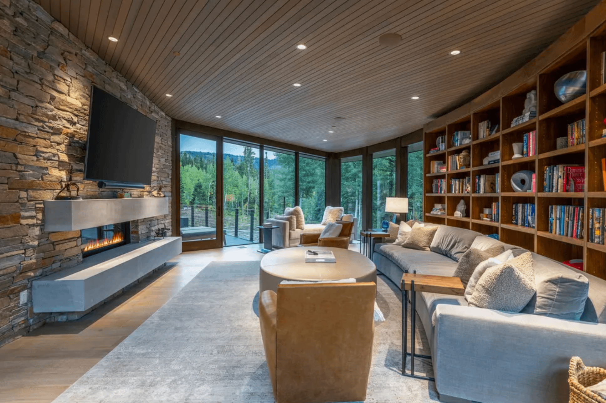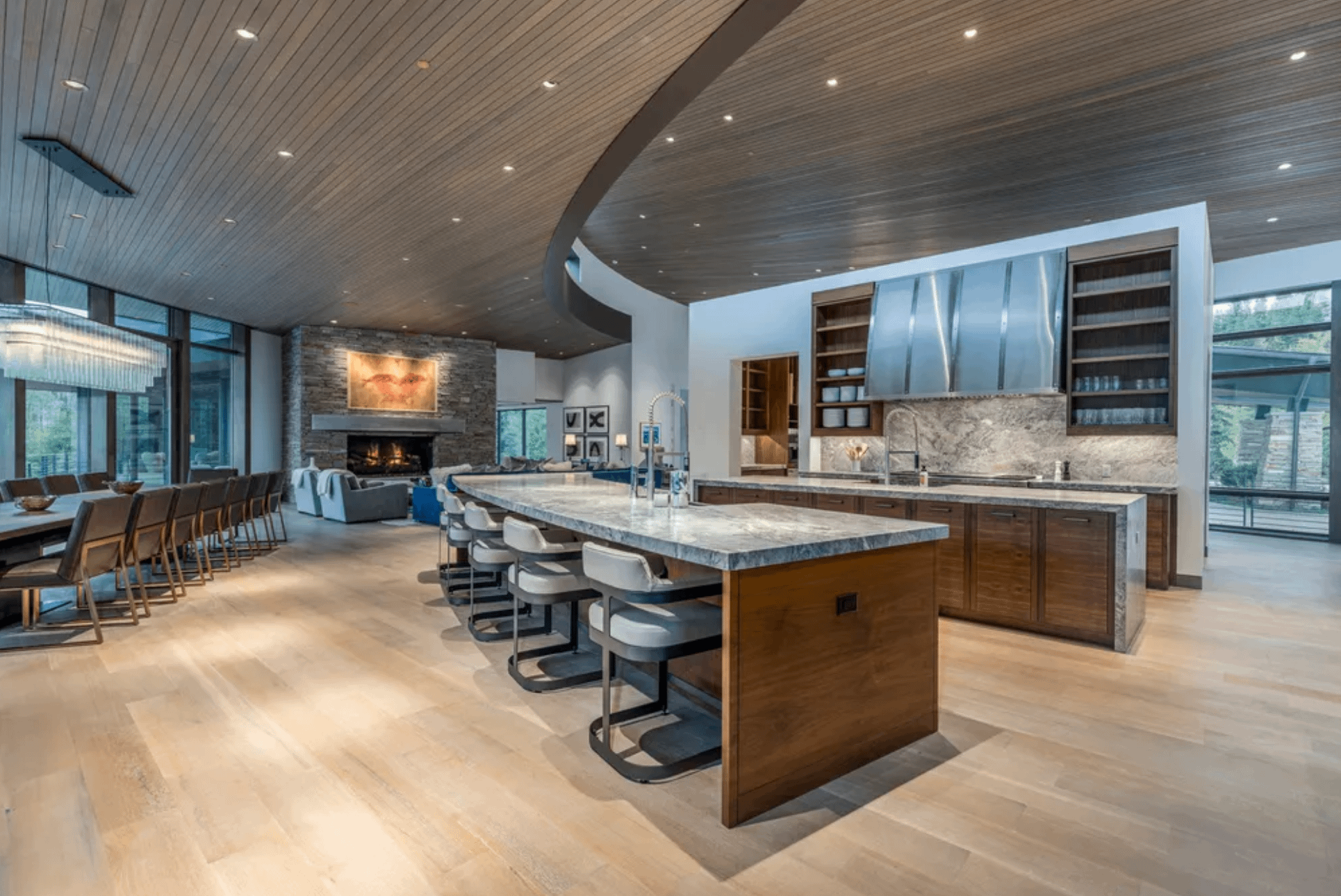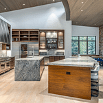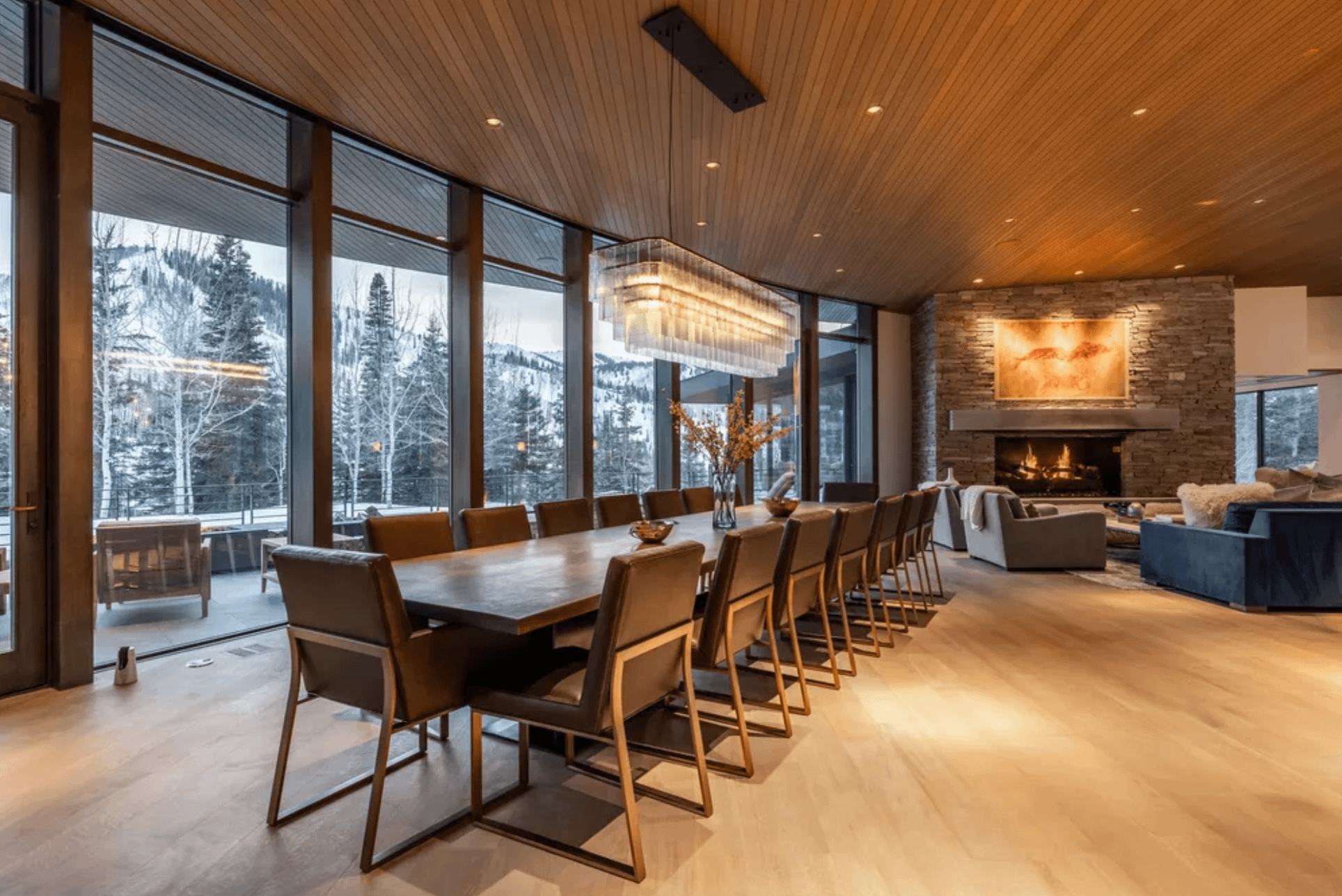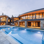 It was designed by UpWall Design and built in 2016. It features over 13,000 square feet of living space with 8 bedrooms, 8 full and 2 half bathrooms, elevator, open concept living & dining areas, kitchen, lower level rec room, movie theater, gym, ski room, 3-car garage and more.