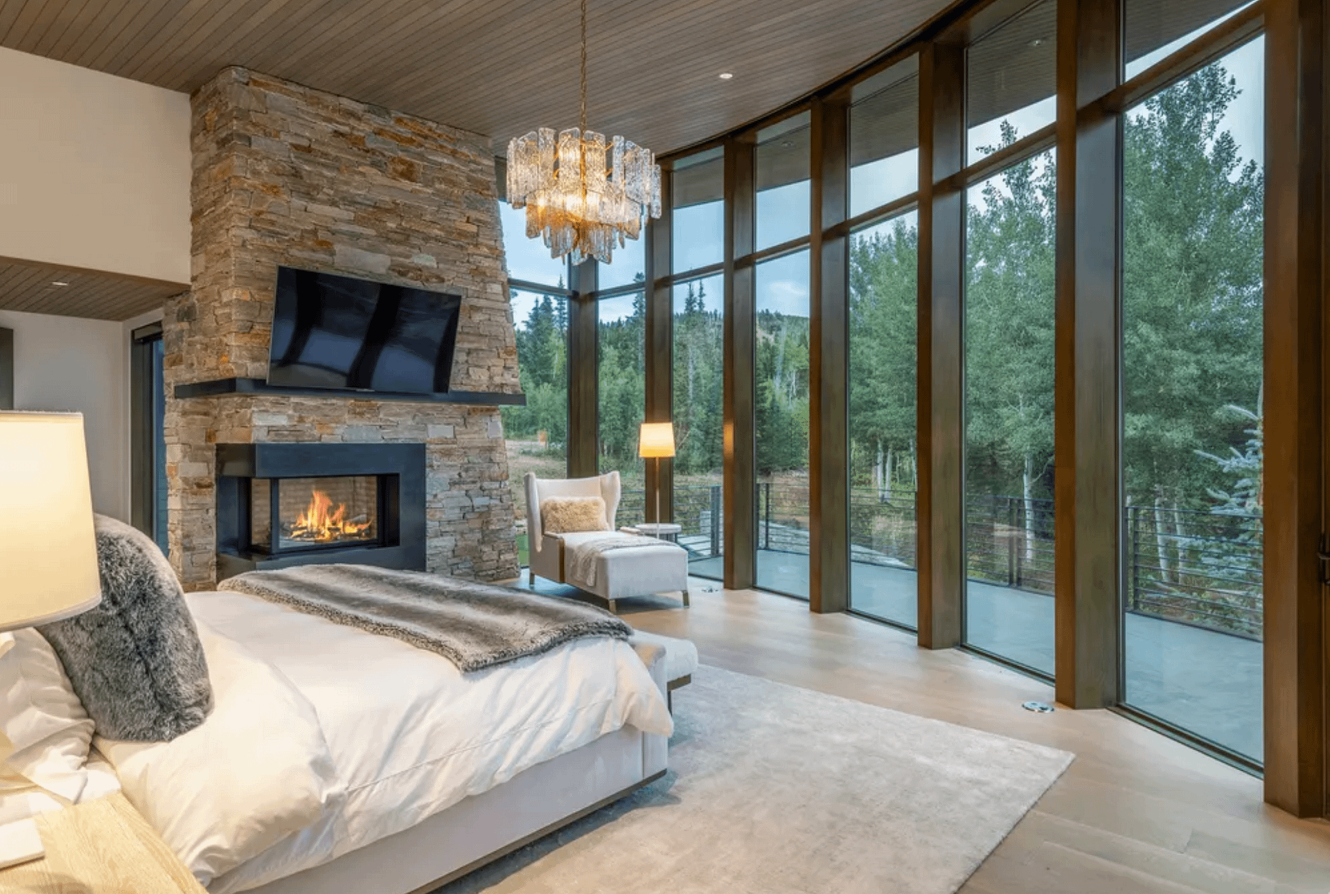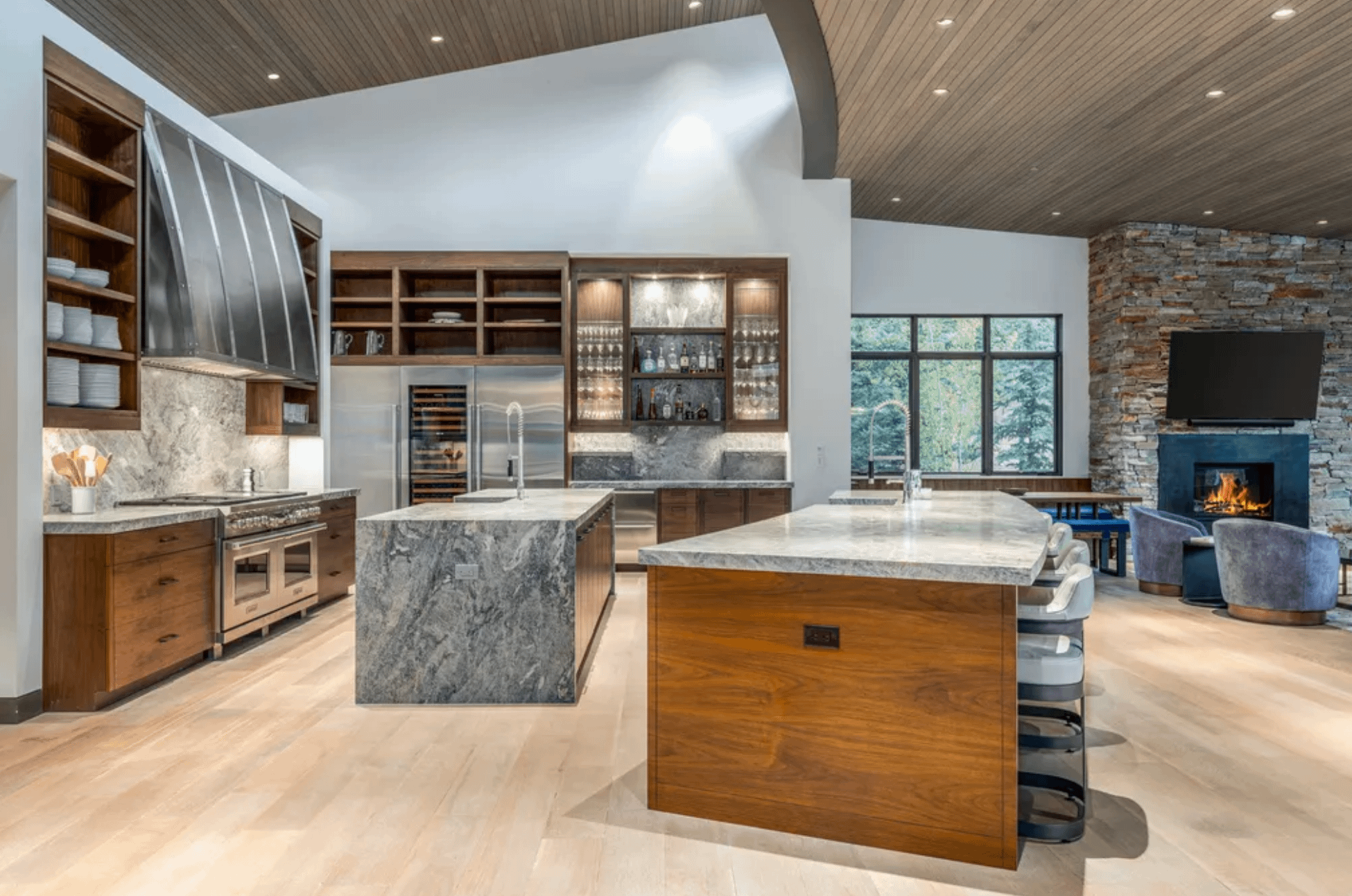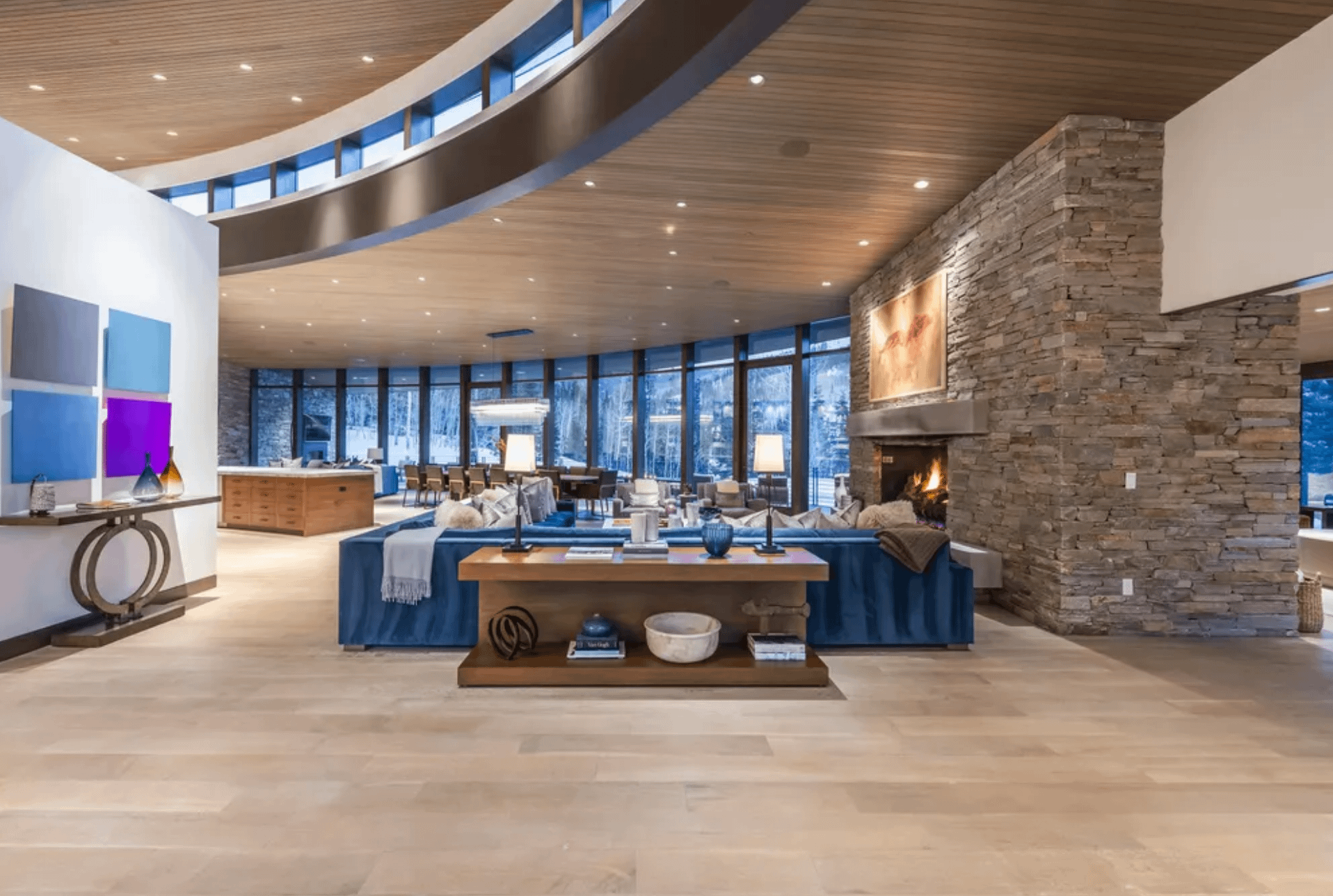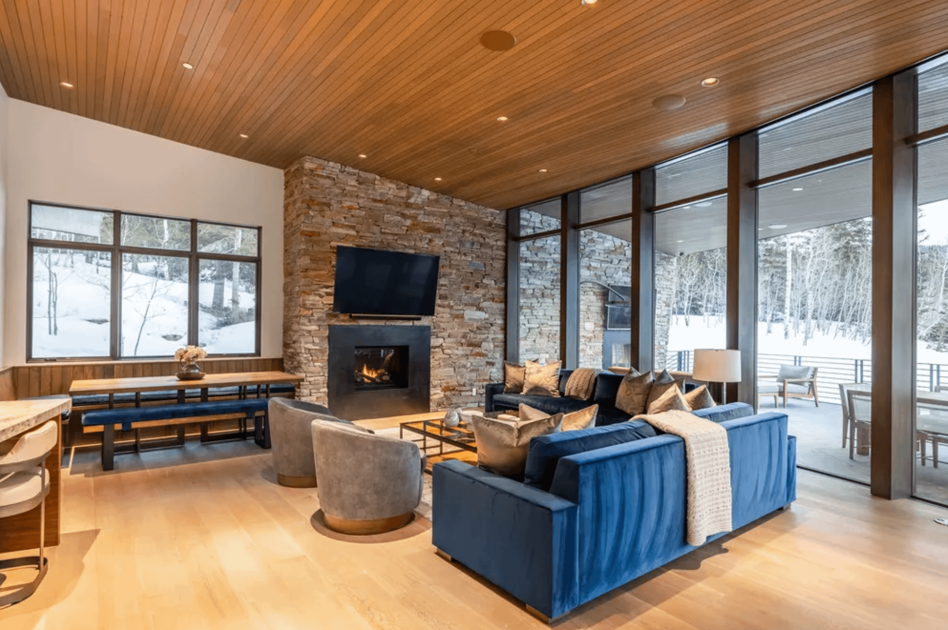 It was designed by UpWall Design and built in 2016. It features over 13,000 square feet of living space with 8 bedrooms, 8 full and 2 half bathrooms, elevator, open concept living & dining areas, kitchen, lower level rec room, movie theater, gym, ski room, 3-car garage and more.