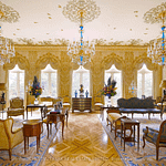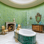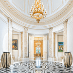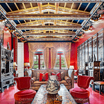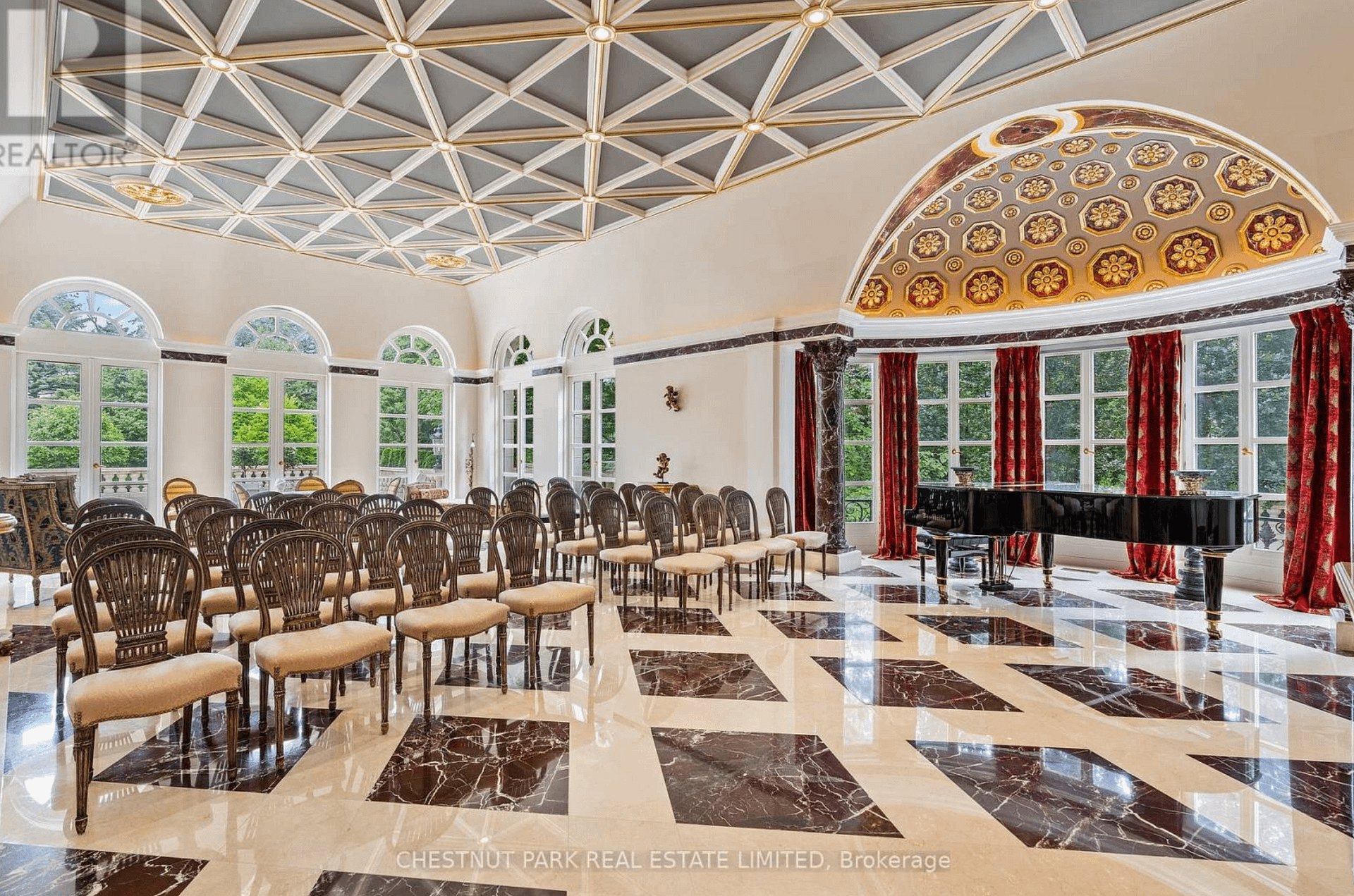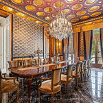 It features 7 bedrooms, 11 bathrooms, elevator, multiple living & dining rooms, kitchen, library, ballroom, indoor pool, 10-car subterranean garage and more.