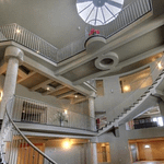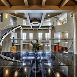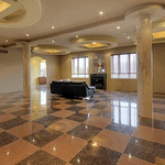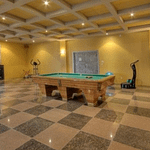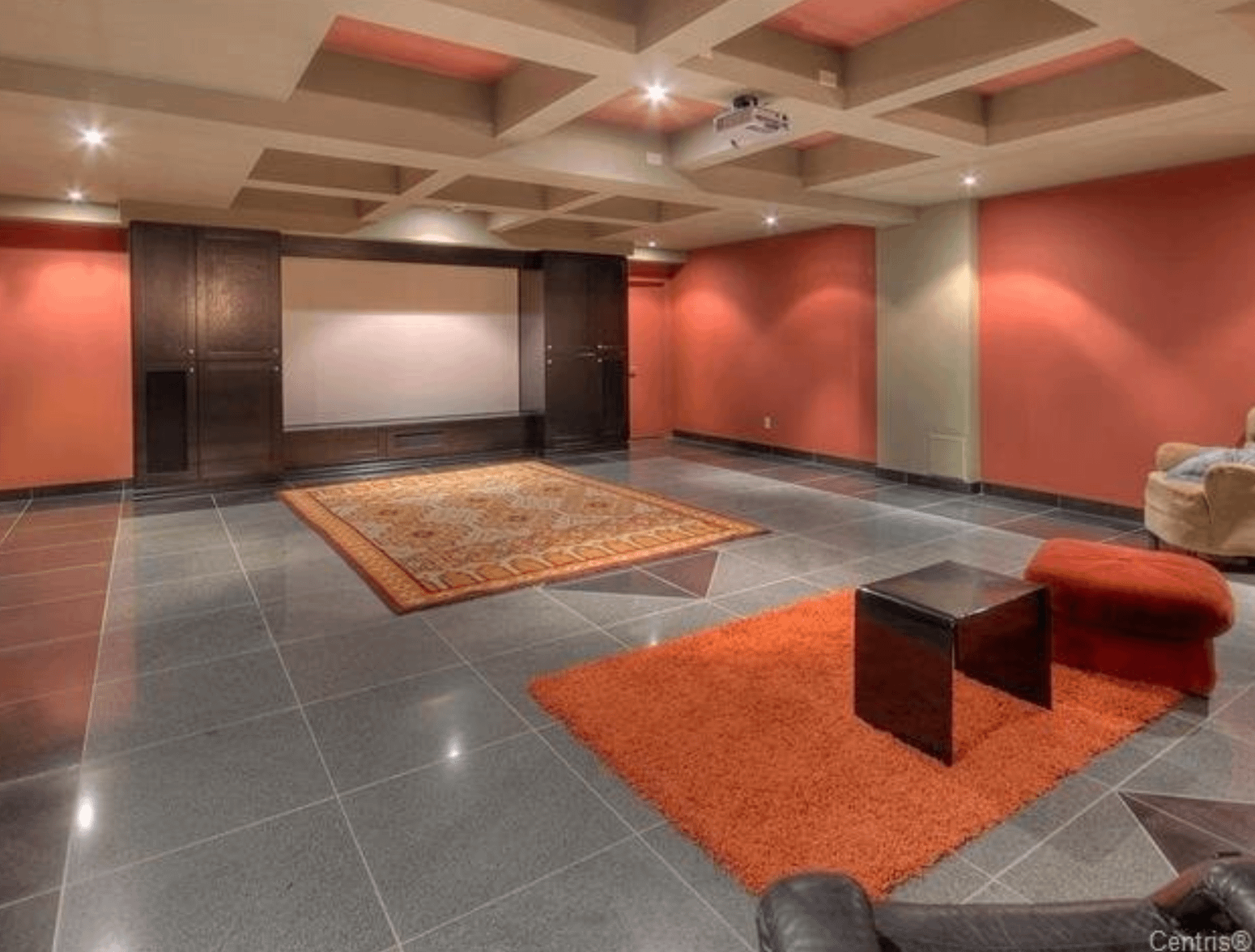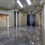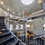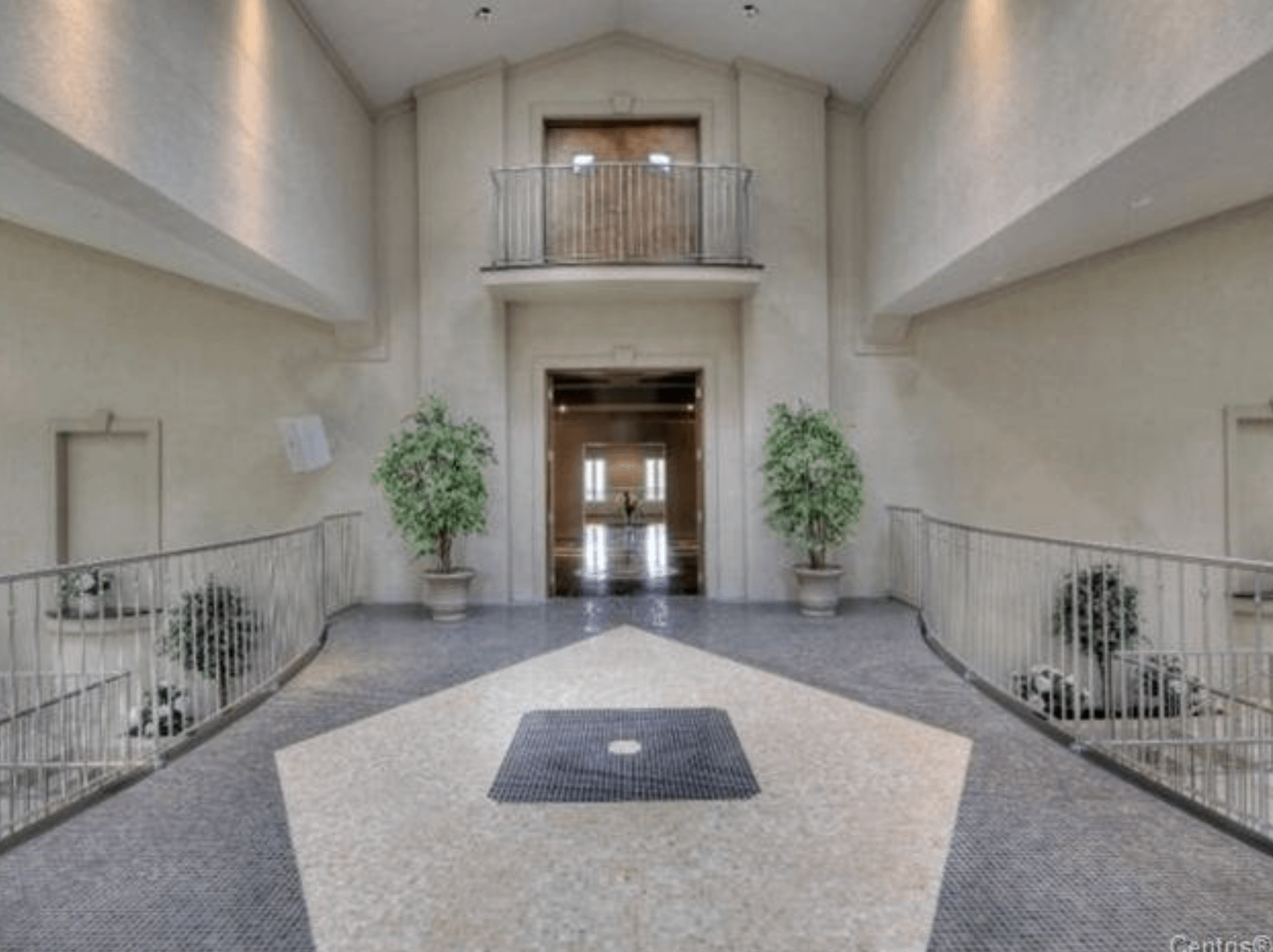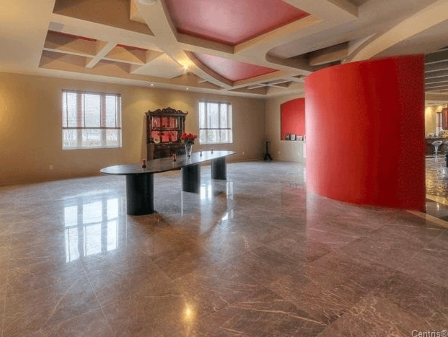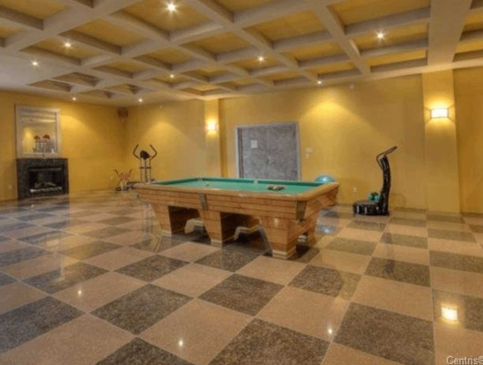 The 40+ room monstrosity was built in 2001 and features over 30,000 square feet of living space with 10 bedrooms, 8 bathrooms, two attached guest apartments, granite floors & staircases, 49 skylights, multiple living & dining rooms, movie theater, atrium with indoor pool, 9-car garage and more.