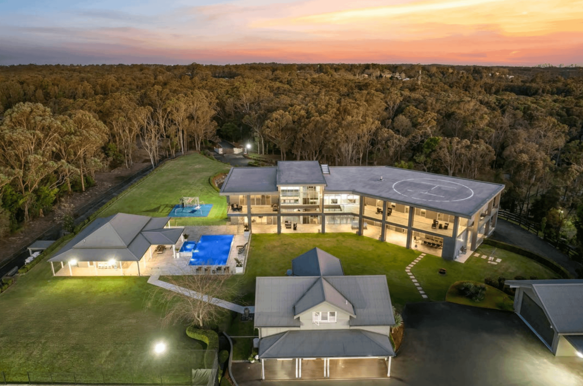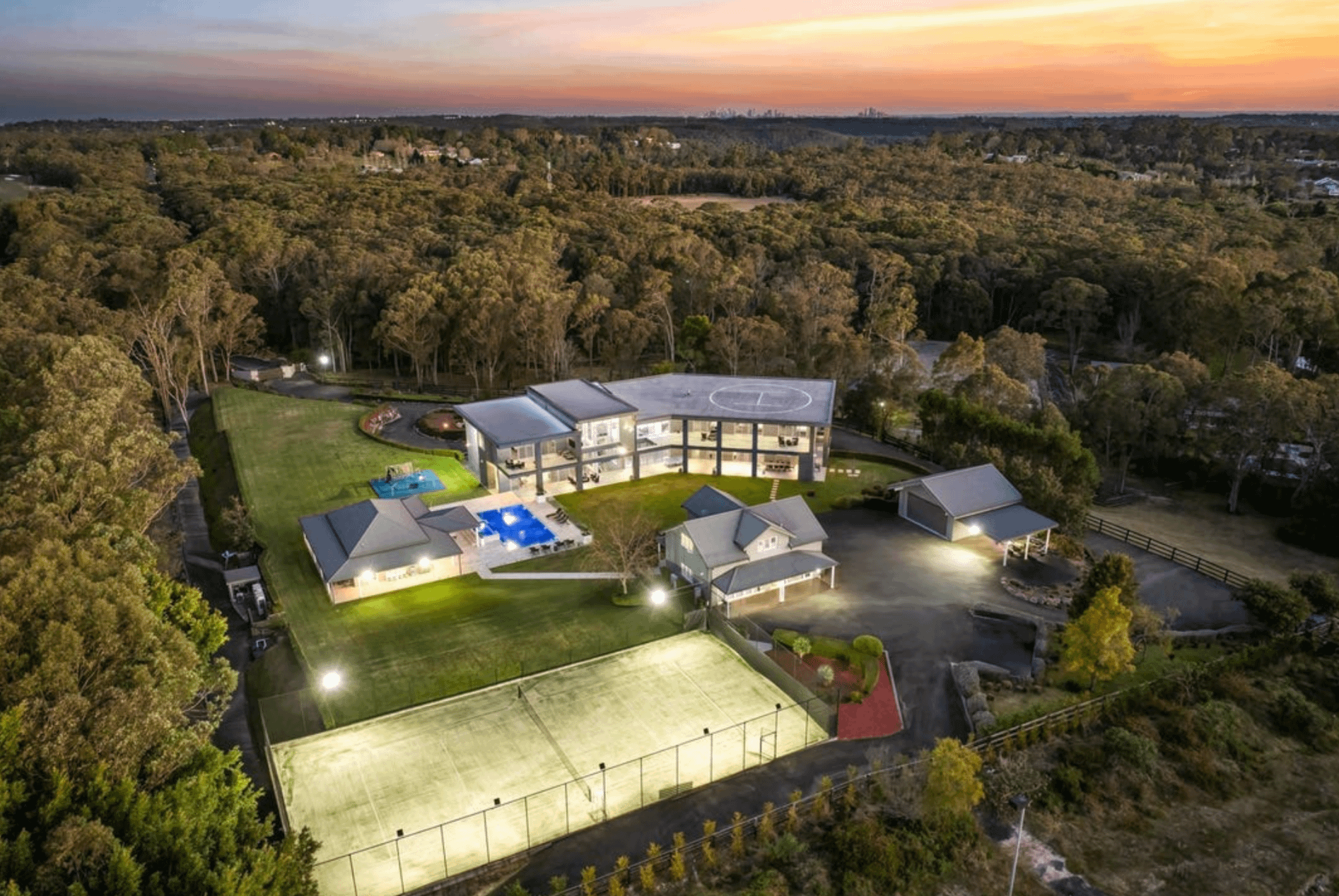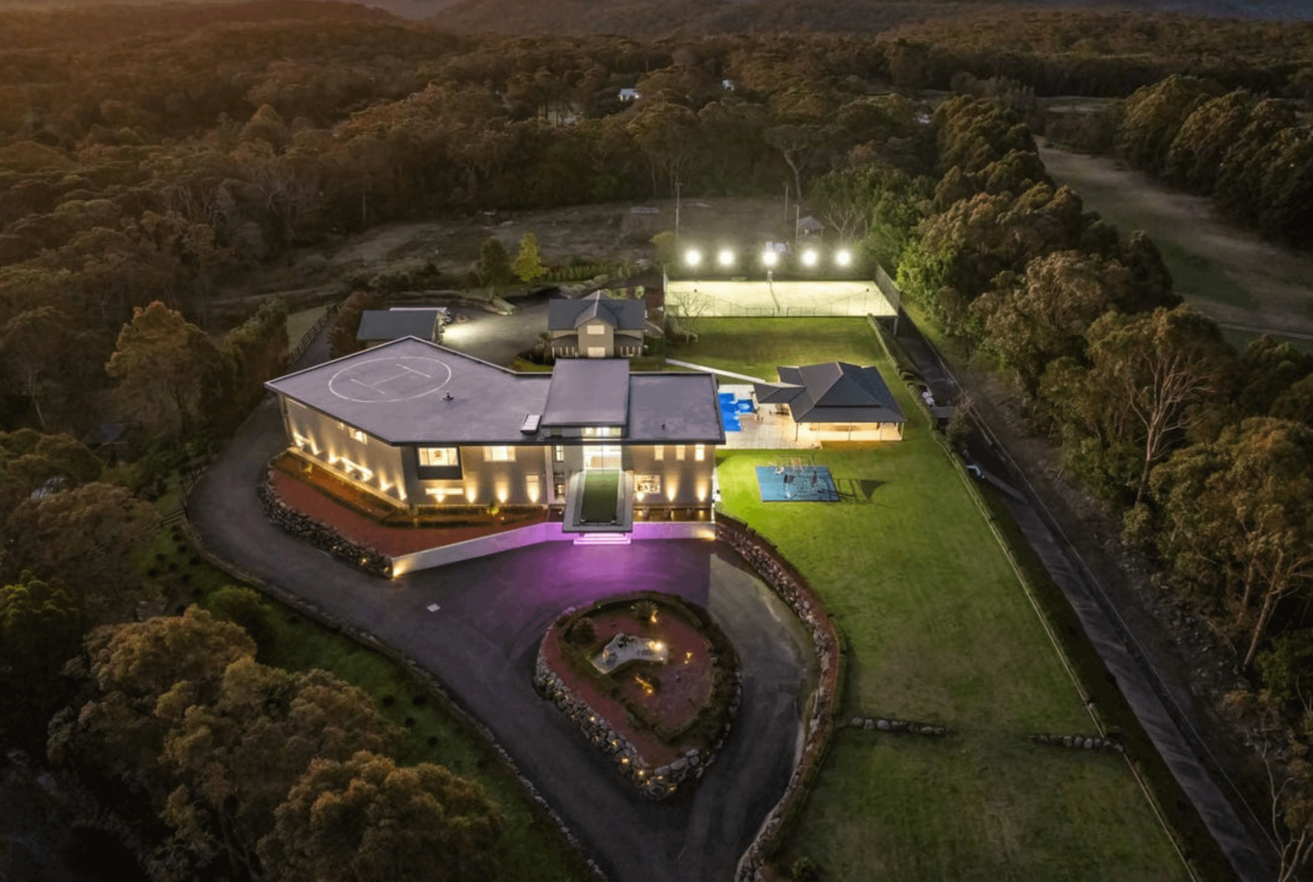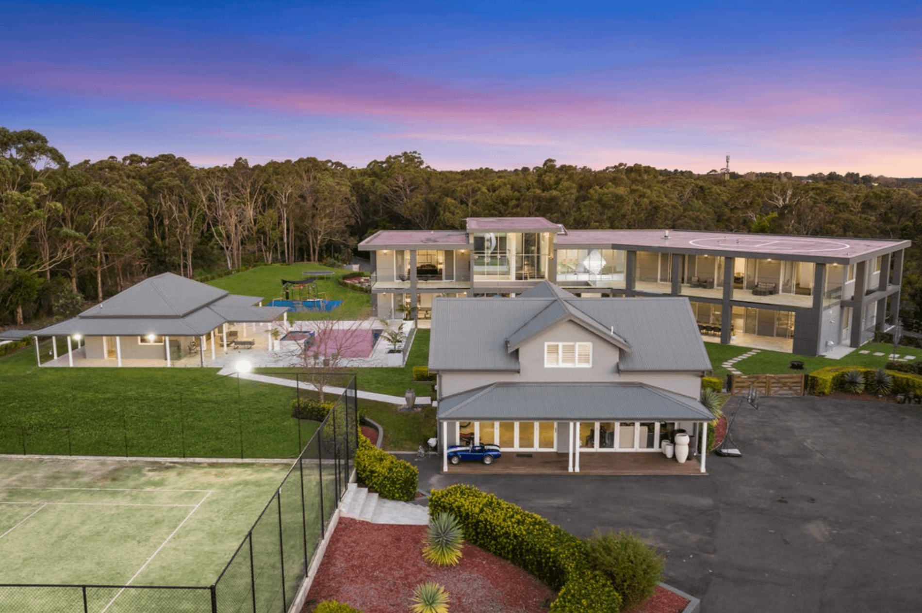 This 5+ acre estate is located at 116A Booralie Road in Duffys Forest, New South Wales, Australia. It features a main house, guest house and pool house.