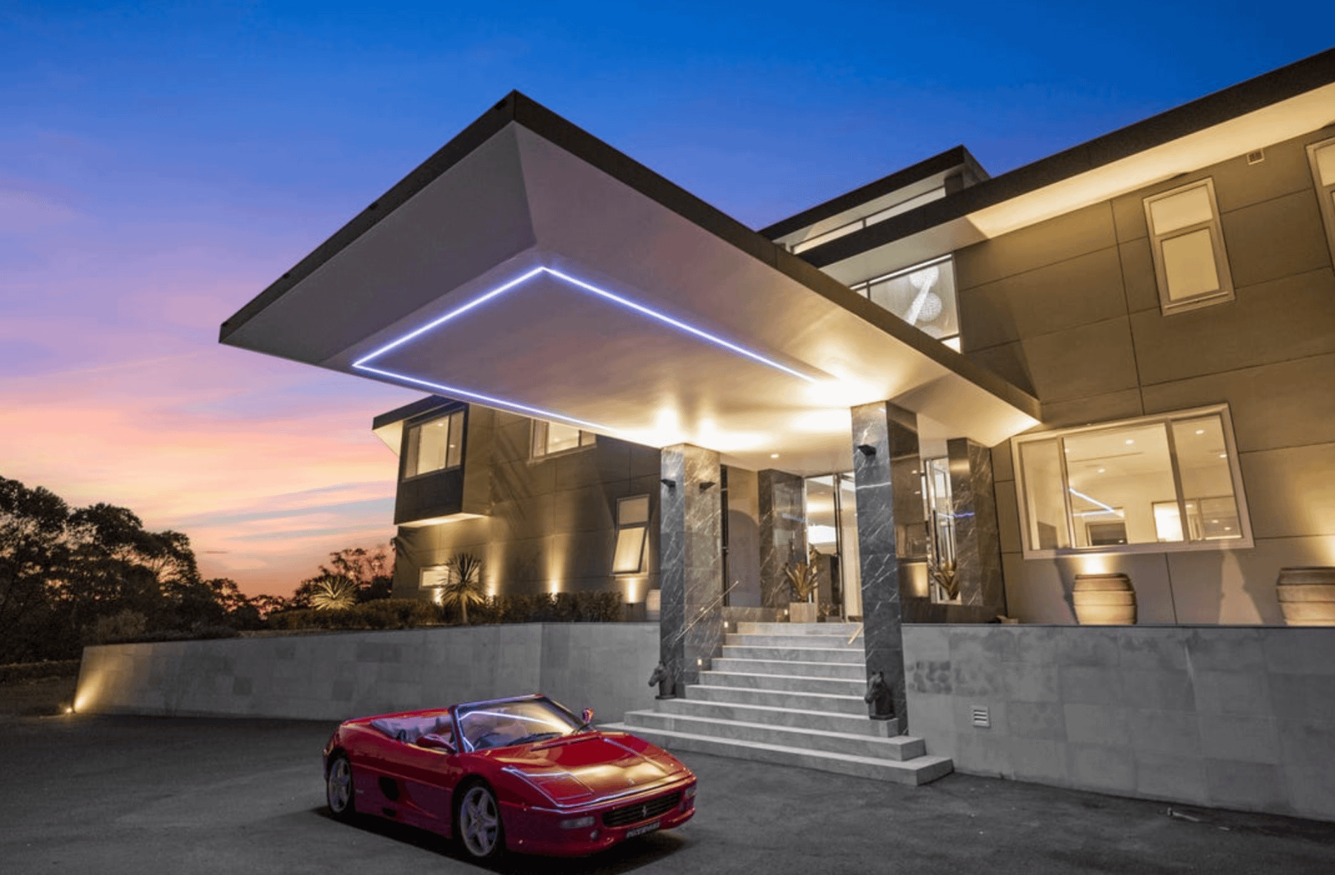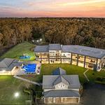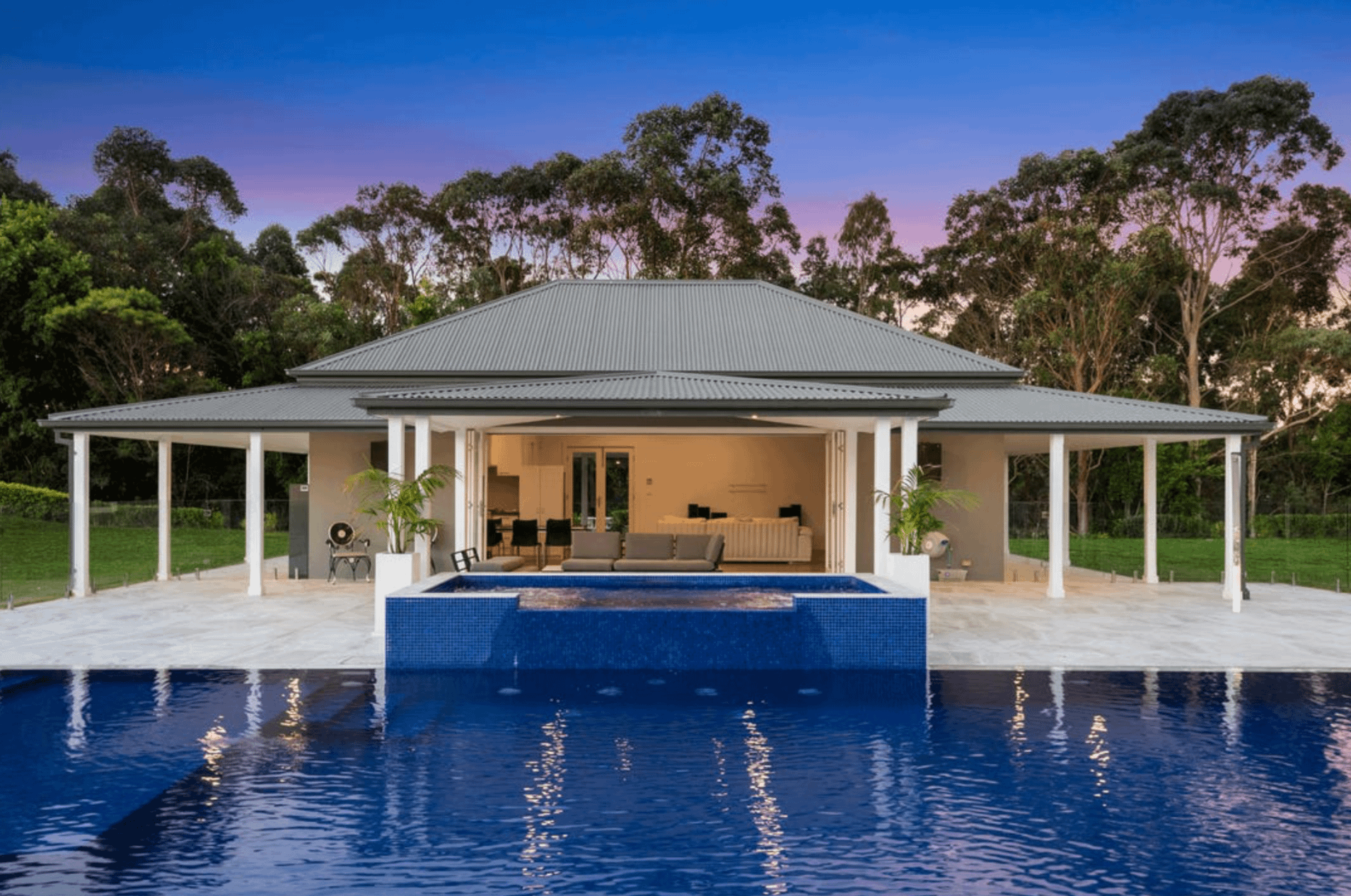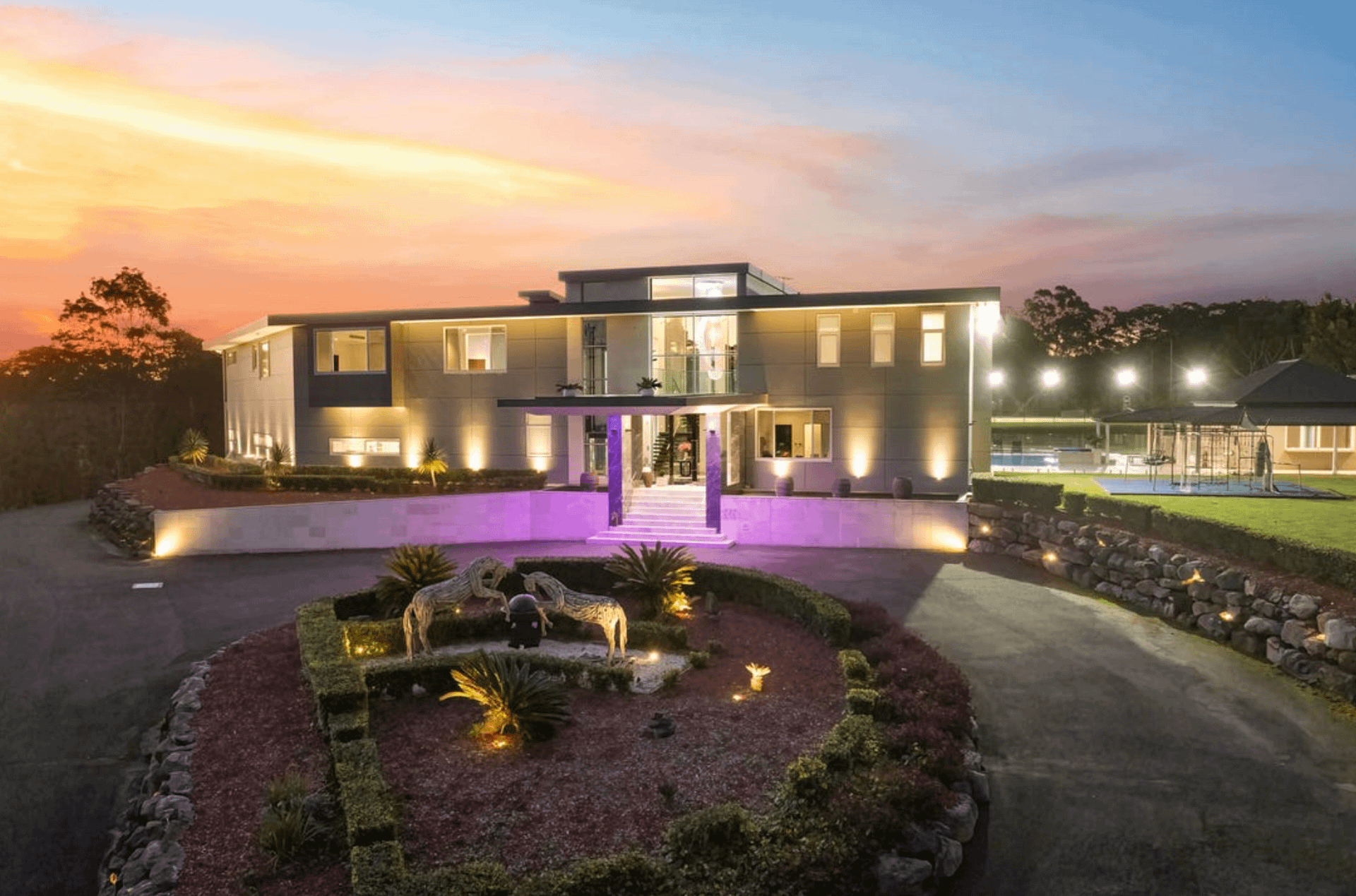 This 5+ acre estate is located at 116A Booralie Road in Duffys Forest, New South Wales, Australia. It features a main house, guest house and pool house.