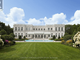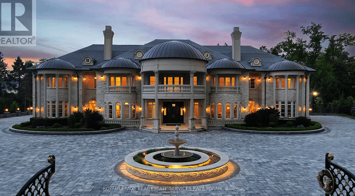 This French-style home is located at 72 Manitou Drive in King, Ontario, Canada and is situated on 1.5 acres of land.Â