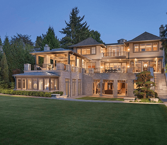 This waterfront home is located at 4585 Leyns Road in Saanich, British Columbia, Canada and is situated on over an acre of land.Â